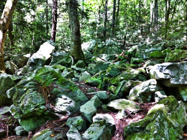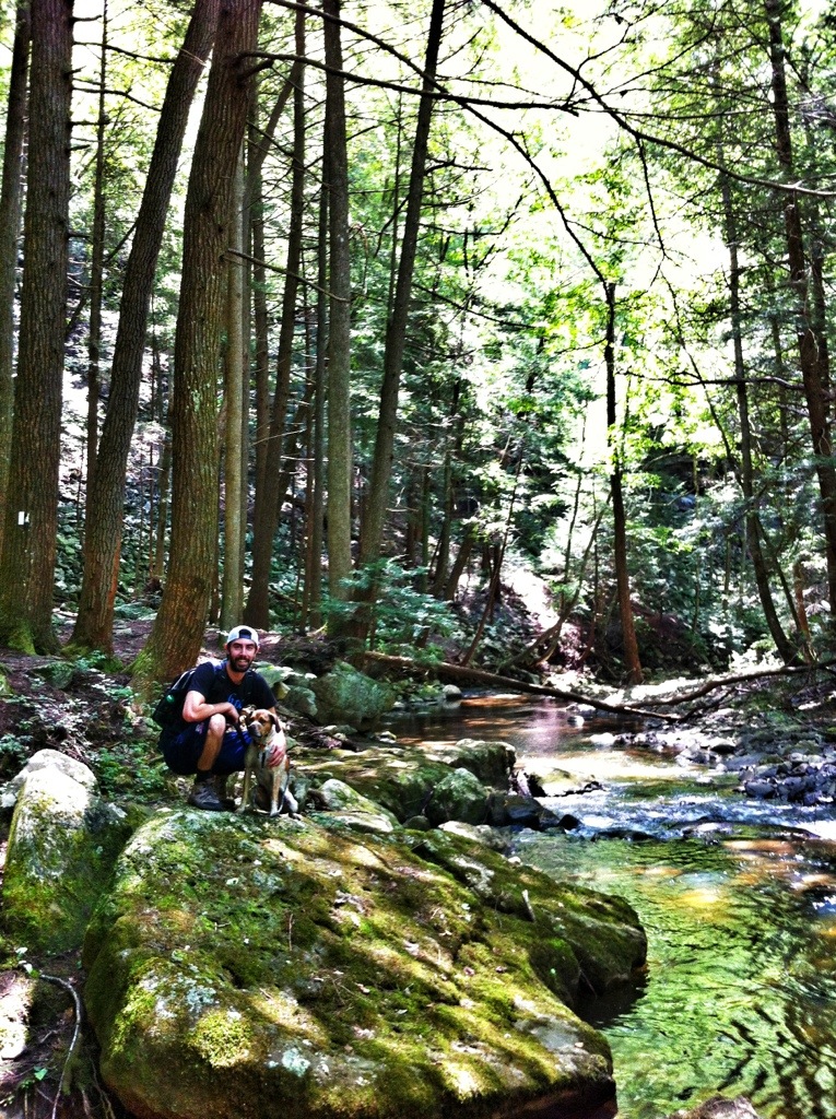 Yo esperaba un sender similar al de Radnor Lake o Edwin Warner, con algunas subidas empinadas pero mas o menos facil de hacer. El sendero Fiery Gizzard comenzo de esa manera – mas o menos facil los primero 10 minutos. El resto del tiempo caminamos por cornizas en las murallas de roca y escalando rocas enormes que cubrian el sendero. Los perros, especialmente Chupete, estaban encantados con el sendero! Chupete estab en su element y pienso que de convirtio en un especialista de parkour porque saltaba de roca en roca intentando no tocar el suelo. En un momento trato de apoyarse en una roca y saltar directo a la proxima pero fallo y no alcanzo a llegar – pobrecito, su ego salio moreteado y despues de eso se calmo un poco. Incluso se metio al riachuelo, lo que es una gran cosa – normalmente odia mojarse! Chori fue un poco mas cuidadoso – me hixo caminar unos pasos extra para encontrar lugares donde su patas no se mojarian (muy extrano) y miraba bien donde saltar antes de aventurarse a la proxima roca. Aun asi, disfruto el paseo y siempre iba al frente mio y encontraba el major camino a seguir. |