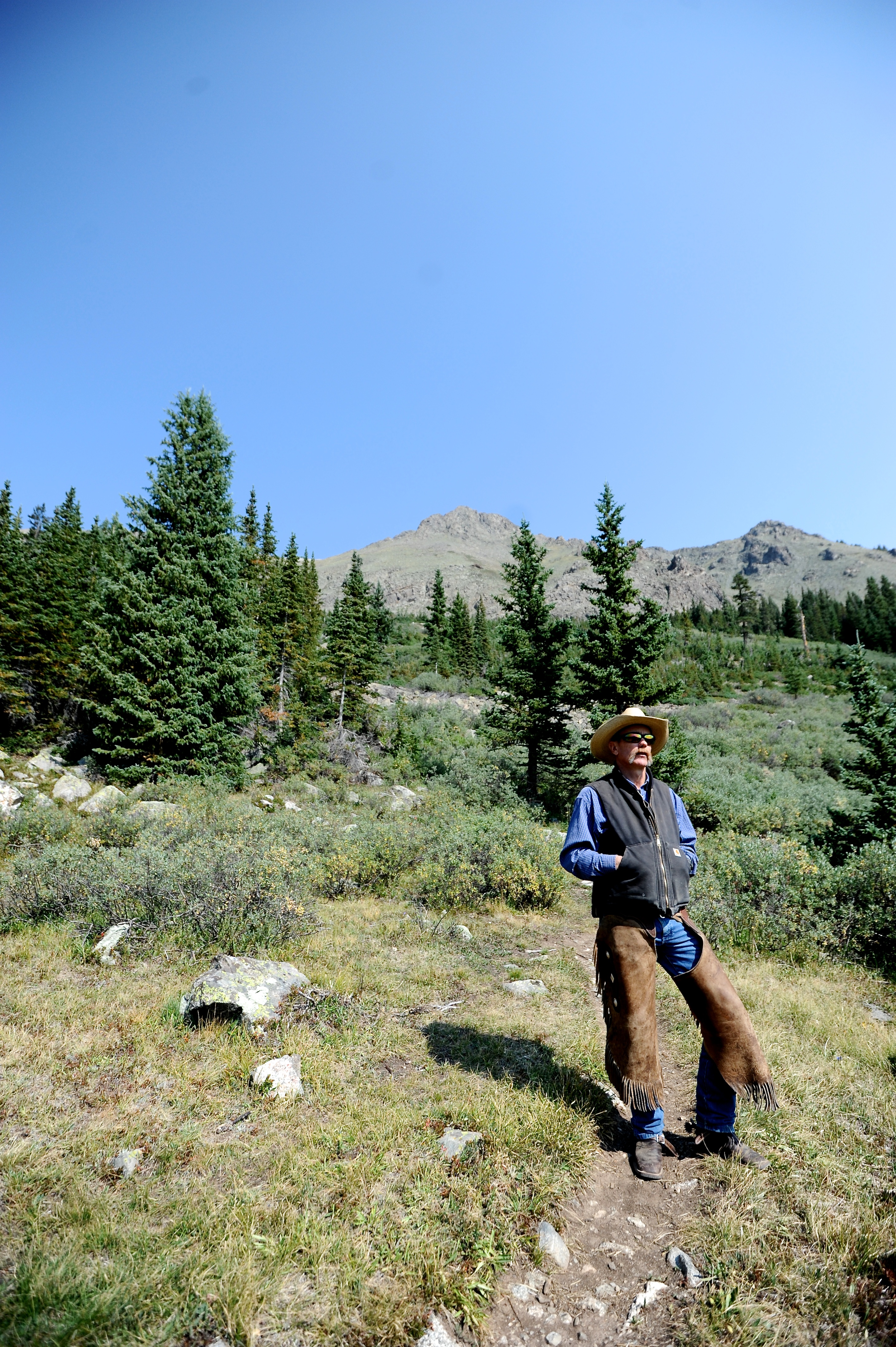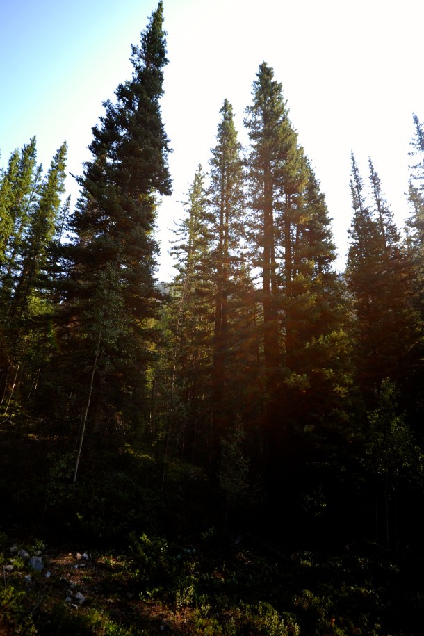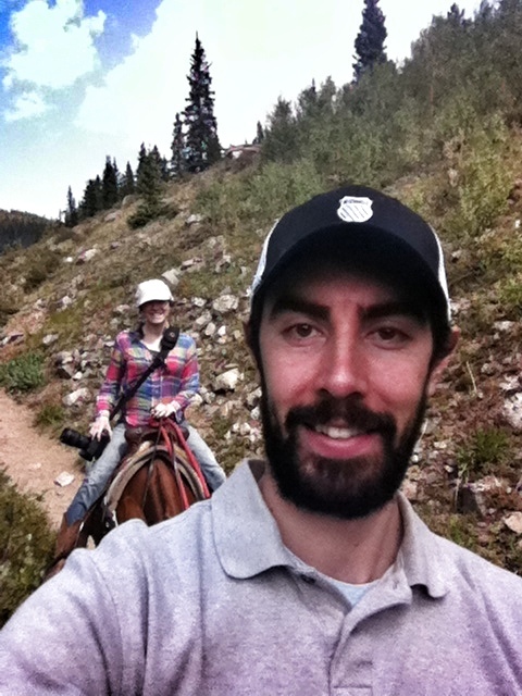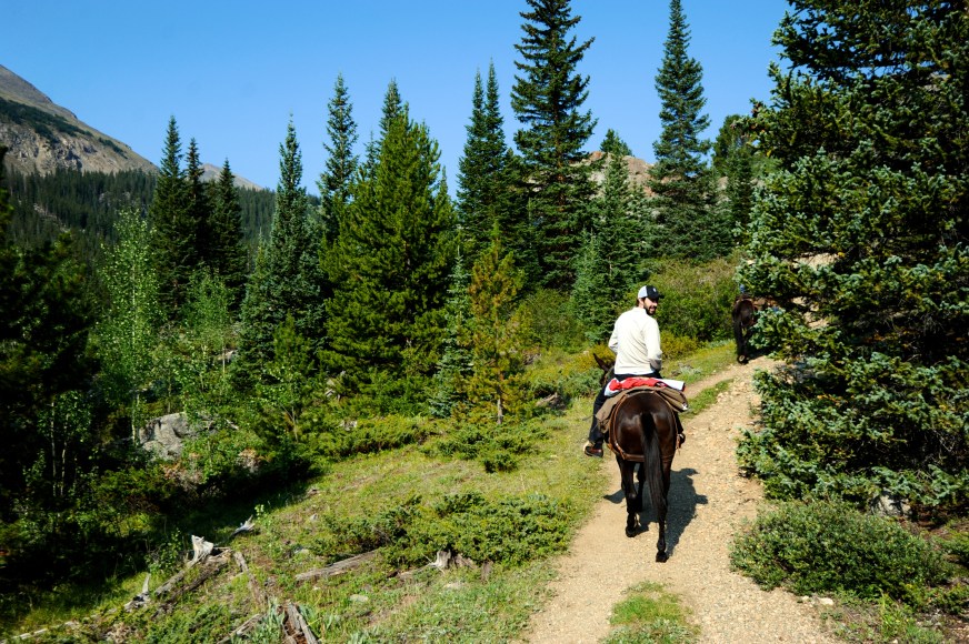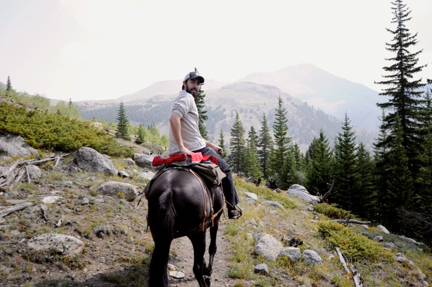 We drove about 5 minutes up toward Mt. Yale and then parked the car and truck carrying the mules and took off up the mountain. Folks, this was a real trail ride. We were going up hill, down hill, over streams and fallen trunks – it was quite an adventure! We went all the way above the tree line and it was GORGEOUS the whole way. It was really cold in the morning – I kept sliding my hands underneath the saddle to warm them up – but after a couple of hours it was really hot. Javi took pics from his phone and I got some from my camera the whole way up, but on the way down we had to concentrate on staying in the saddle because it was a bumpy, steep ride. The mules were great and really well trained, and our guide Joe was fantastic. He told us all about the mountain, the ins and outs of sheep, goat, bear, deer, mountain lion and elk hunting in Colorado, and he always stopped in the most picturesque spots so we could snap a few photos. It was a lovely afternoon and four hours was just right. Manejamos mas o menos 5 minutos camino al monte Yale y estacionamos el auto y la camioneta con el carro que transportaba las mulas y de ahi comenzamos a subir. Amigos, este fue un verdadero sendero. Subiamos, bajabamos, cruzabamos riachuelos y troncos caidos – fue una gran aventura! Subimos hasta pasar la linea de los arboles y fue PRECIOSO durante todo el camino. Estaba frio en la manana – yo tenia que poner mis manos bajo la monta para mantenerlas calientes – pero despues de un par de horas se puso caluroso. Javi saco fotos con su telefonoy yo saque algunas con mi camara en la subida, pero en la bajada me tuve que concentrar en mantenerme en la monta porque el camino era con mucho bache y empinado en algunos lugares. Las mulas se portaron fantasticas, muy bien entrenadas, y nuestro guia, Joe, estuvo genial. Nos hablo sobre las montanas, muchos detalles sobre caza de oveja, cabra, osos, venado, pumas, y elk en Colorado, y siempre se detuvo en los mejores lugares para que pudieramos sacar fotos. Fue una tarde genial y 4 horas fue el tiempo perfecto.