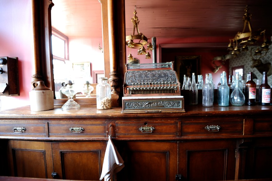 There are currently 35 original buildings that make up the museum, and it’s very interactive. You can walk around each building, touch many of the artifacts, play the old pianos, climb on the engine of the train and tour the caboose – it’s paradise for historians and photographers. There’s an amazing old saloon, a chapel where you can sit in the pews or stand at the podium, restored houses, hotels, a bank, a pharmacy, a doctor’s office and dentist, a park ranger’s office, stables, several examples of different kinds of horse-drawn carts, wagons and carriages. It’s such an impressive and fun museum – we only anticipated spending an hour or so but we were there for close to three hours scouring the collection. Actualmente hay 35 edificios originales que hacen el museo, y es muy interactivo. Puedes camniar alrededor de los edificios, tocas algunos artefactos, tocar los pianos antiguos, subirse a la locomotora del tren y hacer un tour de las intalaciones – es un paraiso para historiadores y fotografos. Hay un salon de juegos antiguo que es increible, una iglesia donde te puedes entar en las bancas y subirte al podio, casa restauradas, hoteles, un banco, una farmacia, consultas de doctor y dentista, oficina de guarda bosque, establos, ejemplos de muchos tipos de carrozas, vagones y carruages. Es un museo impresionante – nosotros pensabamos estar ahi por mas o menos una hora pero al final terminamos dando vueltas por mas de 3 horas viendo la coleccion completa.
