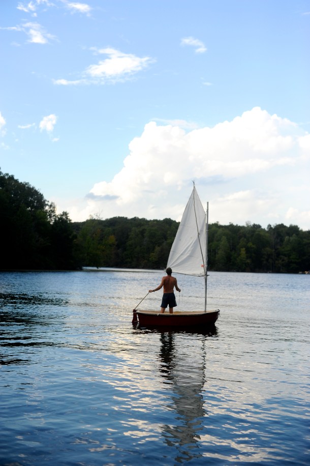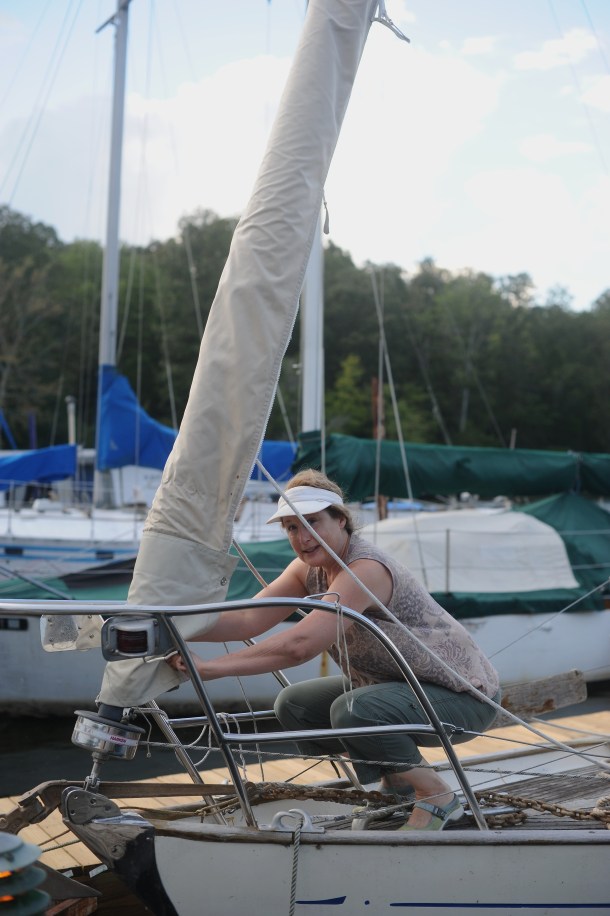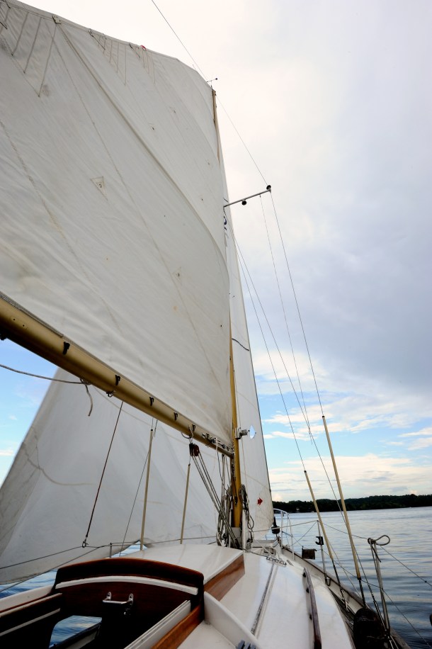 | One of the highlights of the trip was an adventure on the lake in Andre’s sailboat the Duchess! He and Melissa took us out in the boat in the evening just as hurricane Isaac winds were starting to kick in. I swear I thought that boat was going to topple over when it leaned dangerously close to one side or another – I’d never been sailing before so that was new for me! Andre never looked alarmed and he’s a seasoned sailor so I got over it pretty quick. Andre has been sailing his whole life and knows everything there is to know about the sport and pastime so he educated us (and especially Javi, who helped with ropes and other sailboat things) while we were out on the water. The lake was lovely and calm, the weather was perfect and we brought a little picnic of hummus and beer for the trip. To top it off, we saw a lovely rainbow as we started heading back to the marina! | Una de las cosas mas geniales del viaje, fue la aventura en el lago en el velero de Andre, la Duquesa! El y Melissa nos llevaron en el bote la tarde que los vientos del huracán Isaac comenzaron a soplar. Les juro que pense que el bote se iba a dar vuelta cuando se inclinaba hacia un lado – nunca había navegado a vela ai que todo era nuevo para mi! Andre nunca se vio alarmado, y el tiene experiencia en navegación, así que me calme rápidamente. Andre has navegado toda su vida y sabe todo lo que se necesita saber sobre el deporte y el pasatiempo, así que nos trato de ensenar (y especialmente a Javi, que ayudo un poco con algunas cuerdas) mientras estábamos en el agua.El lago estaba tranquilo, el tiempo estaba perfecto y trajimos un picnic de humus y cerveza para el paseo. Para hacerlo aun mejor, vimos un arcoiris precioso cuando íbamos de vuelta a la marina! |