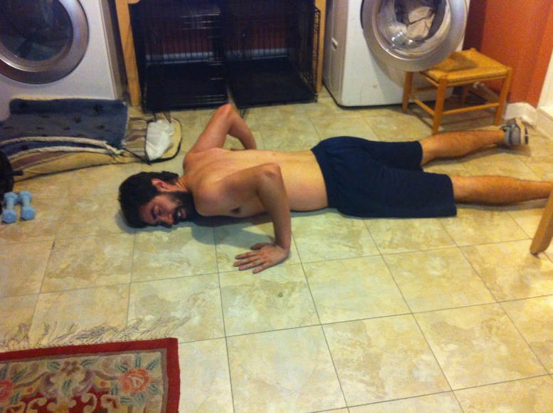 | Here’s the catch – Javi’s not the biggest fan of Insanity on its own. First of all, it’s brutal. It hurts our knees and totally wears us out. He also wants more weightlifting incorporated into our workout schedule. SO, we did some research online and looked up a hybrid schedule for P90X and Insanity so we can get a nice mix of cardio / plyometrics and weight lifting. Insanity has weightlifting using the weight of your body, but let’s face it – it’s almost 100% cardio (at least in the first month – we still haven’t tried the DVDs from the second 30 days). So now here we are with P90X and Insanity altering every other day. It’s killer. | Aqui esta la cosa – Javi no es muy fanático de los entrenamientos de Insanity por si solos. Primero que nada, es brutal. Te duelen las rodillas y te deja muerto. El también quiere un poco mas de levantamiento de pesas incorporado a la rutina. Así que investigamos un poco en linea y encontramos una rutina donde se mezcla Insanity y P90X, asi que podemos tener la mezcla de cardio y pesas. Insanity usa tu peso corporal como pesas pero seamos honesto es prácticamente 100% cardio (o por lo menos el primer mes – todavía no hacemos los DVDs del los segundos 30 dias). Asi que ahora alternando P90x e Insanity día por medio el entrenamiento es brutal. |