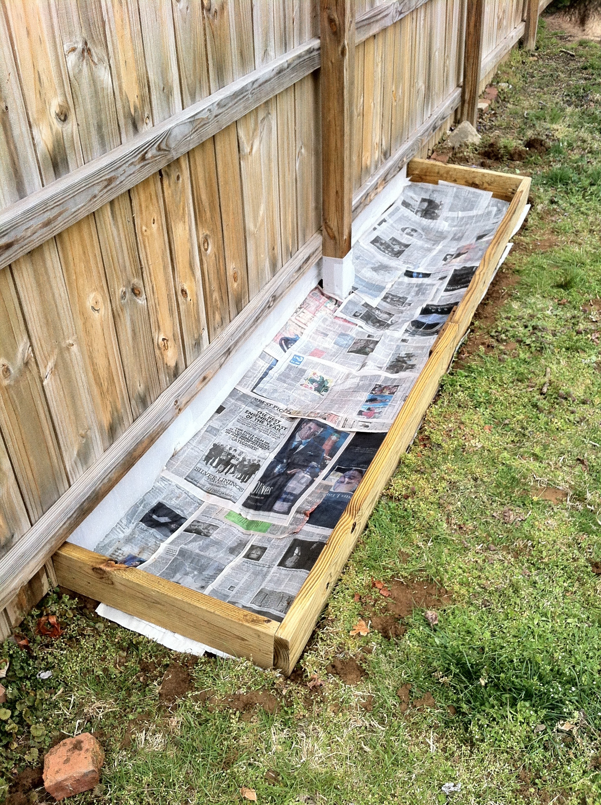 For the raspberries I made a small bed that would host the canes and keep the weeds (and dogs) away. The set up was pretty simple, take the weeds out, make the frame, fill out with good soil and good to go. Something to note on this set up is that I covered the part of the fence that will be in contact with the soil with plastic. I dont want the chemicals from the wood to leak into the soil and I also want to avoid premature rotting of the wood. Para las frambuesas hice una jardinares que hospedara las canas y mantendrá las malezas (y perros) a raya. Hacerla fue simple, sacar las malezas, poner el marco de madera, llenar el espacio con tierra de hoja, y listo. Algo importante que mencionar es que cubrí la parte de la reja que estará en contacto con la tierra con plástico. No quiero que los químicos de la madera tratada se vayan a la tierra o que las madera se pudran prematuramente.