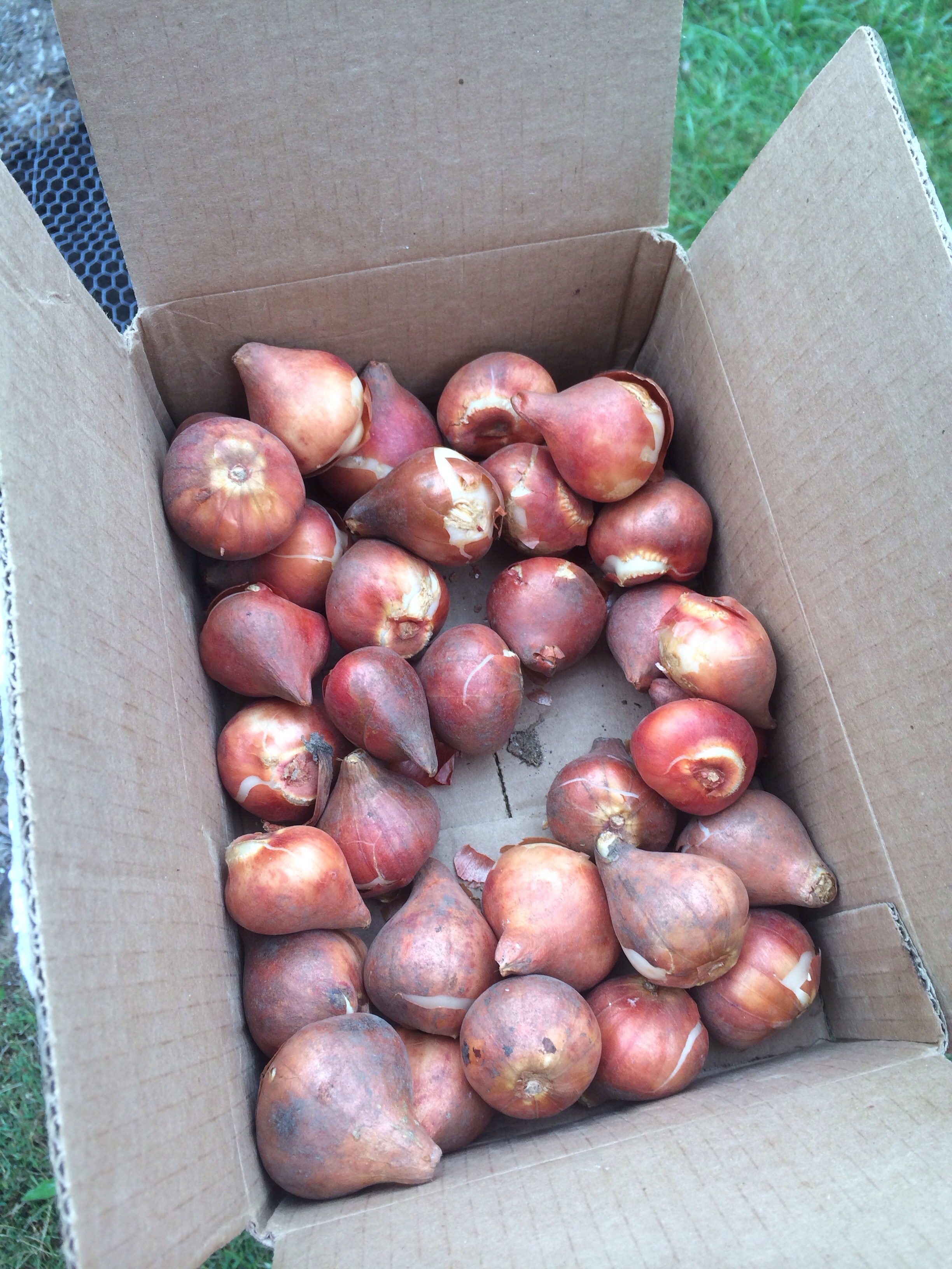 From what I read – I am not a bulb expert – the trick is to make sure to plant the bulbs at the right depth. To complete this task I used a drill with a bulb auger. It took a while, but I am so excited to see the result on the spring. I covered the bulbs with mulch, and then covered the mulch with chicken wire to keep the squirrels away from the bulbs. I read online that if squirrels look chubby it is because the winter will be long. Well, if the squirrels around our house are chubby I want to make sure it’s because the winter will be long and not because they ate all my bulbs. I hope they don’t even try to eat them – they drove me crazy this summer eating my tomatoes. Por lo que lei – no soy un experto en bulbos – el truco está en asegurarse de plantar los bulbos a la profundidad adecuada. Para completar esa tarea, use un taladro con una barrena de bulbos. Me demore un poco, pero estoy tan emocionado por ver el resultado en la primavera. Cubrí los bulbos con molido de madera, y luego con tela metálica. El objetivo es mantener a las ardillas lejos de los bulbos. He leído que si las ardillas se ven gorditas se debe a que el invierno va a ser largo. Bueno, si las ardillas alrededor de nuestra casa estan gorditas, quiero asegurarme que es porque el invierno será largo y no porque se comieron todos mis bulbos. Así que espero que ni siquiera tratan de comer los bulbos, porque me volvieron loco comiendose mis tomates.