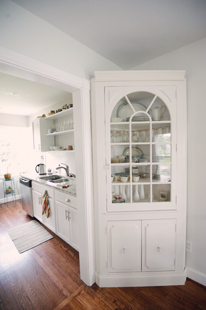 We’ve had our eye on the local Craigslist ads lately, and it was there that we found an awesome new stained glass bedroom fan as well as a set of 8 antique dining room chairs that match our table. I also picked up an antique Queen Anne coffee table, and a sweet little kid-sized rocking chair from a local yard sale. I’ve been spending a lot of time at Goodwill lately (more on that later) and on one shopping trip I found a gorgeous curio cabinet for only $75 that we installed in the corner of our dining room. Now Javier and I finally have a place to display our family china and crystal that my aunt Jane and uncle Bruce gifted to us for our wedding 7 years ago!