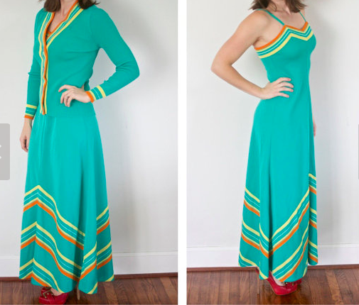 1970s Polyester Dress with Matching Sweater