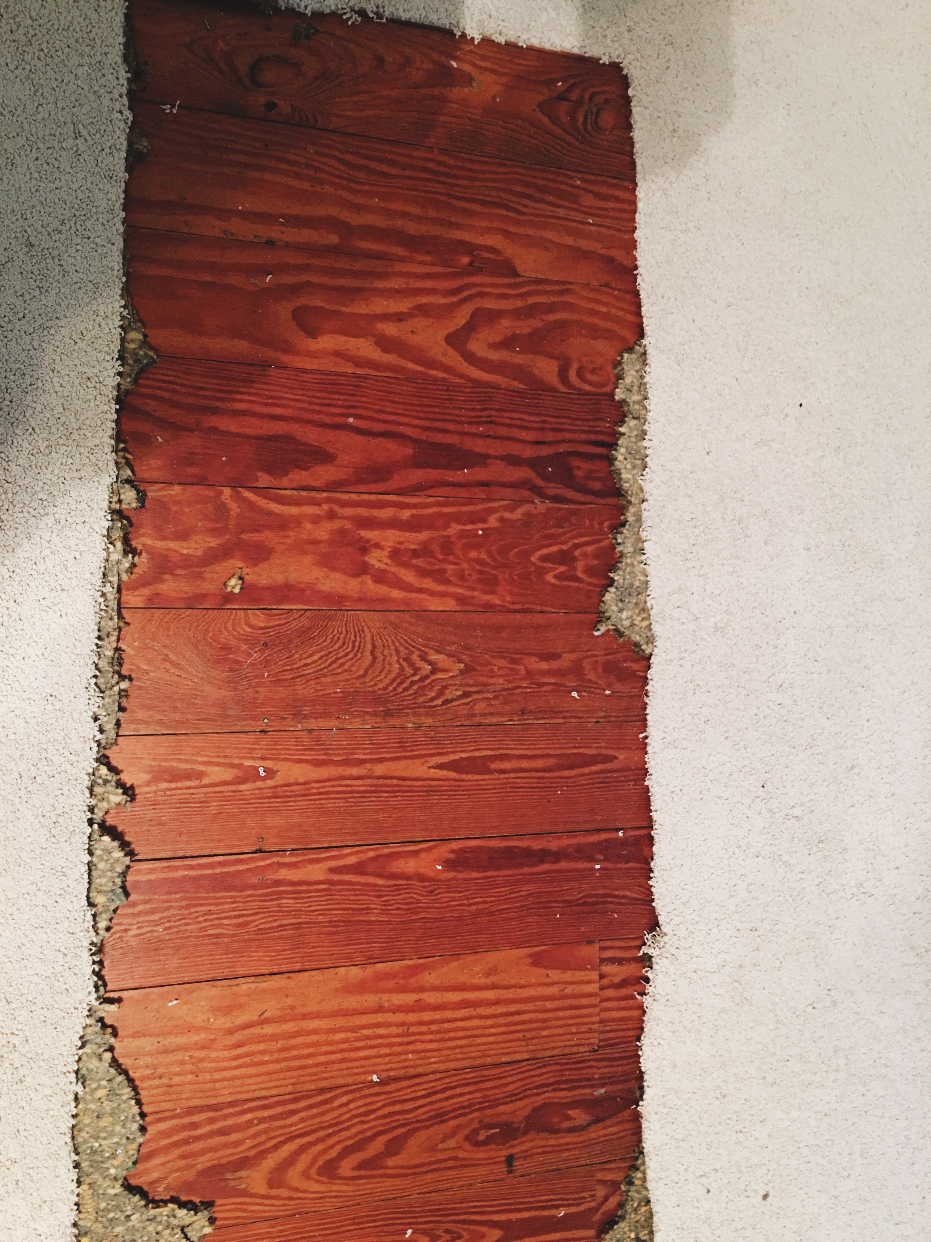 Carpet removed, wood cleaned, quarter round installed. AH!