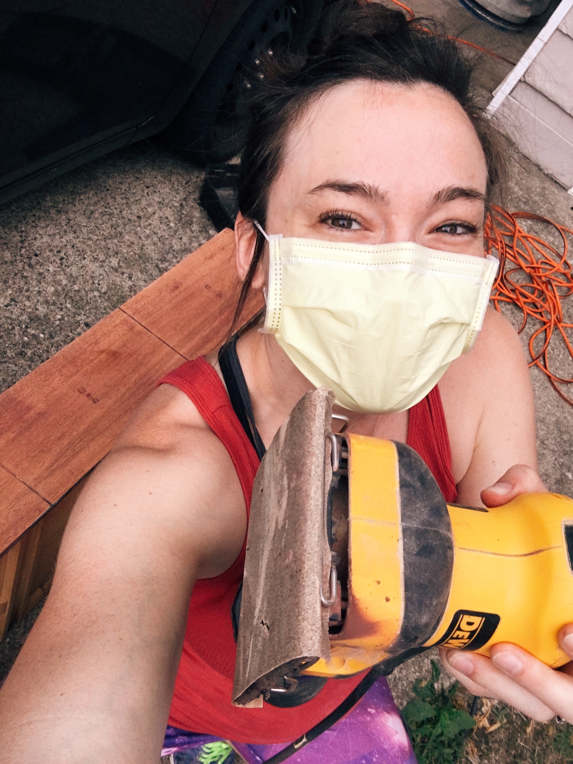We spent nearly every weekend (because working full time) the winter I was pregnant with Ariel refinishing every bit of our hand-me-down furniture in the kitchen of our first house. Joel would strip and sand one weekend, and the next I’d stain and poly what he’d prepped. We had the timing down to a science.