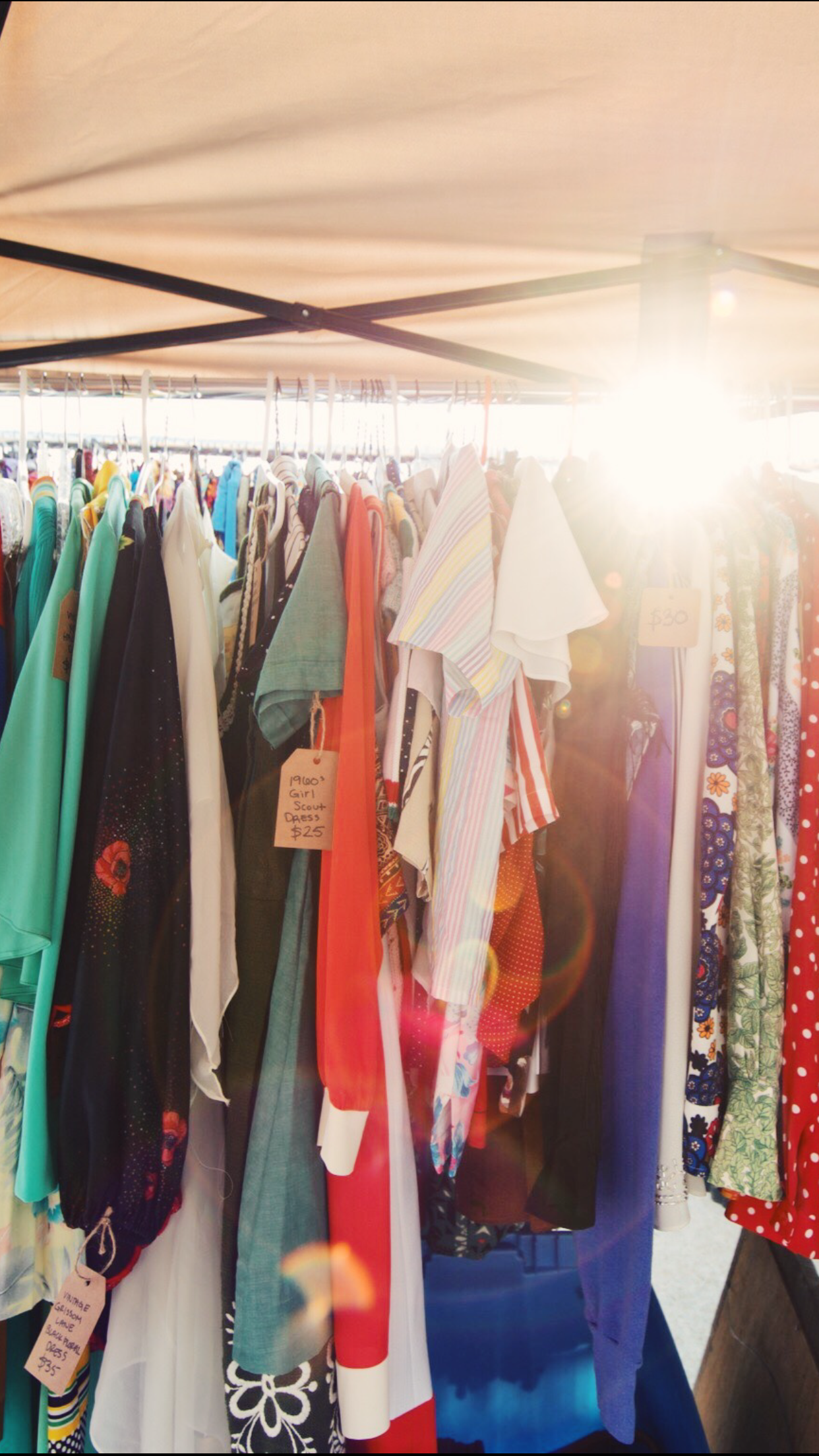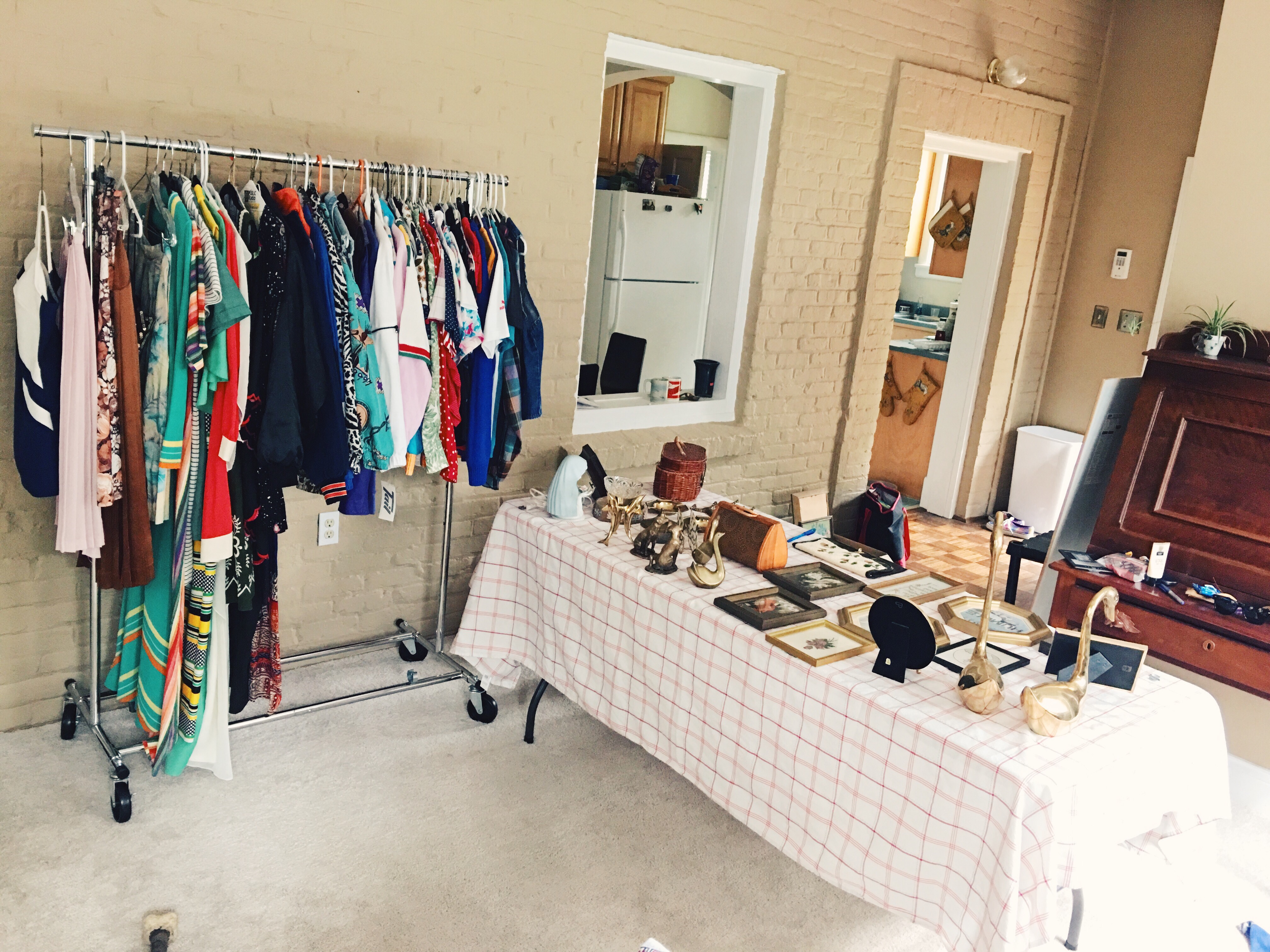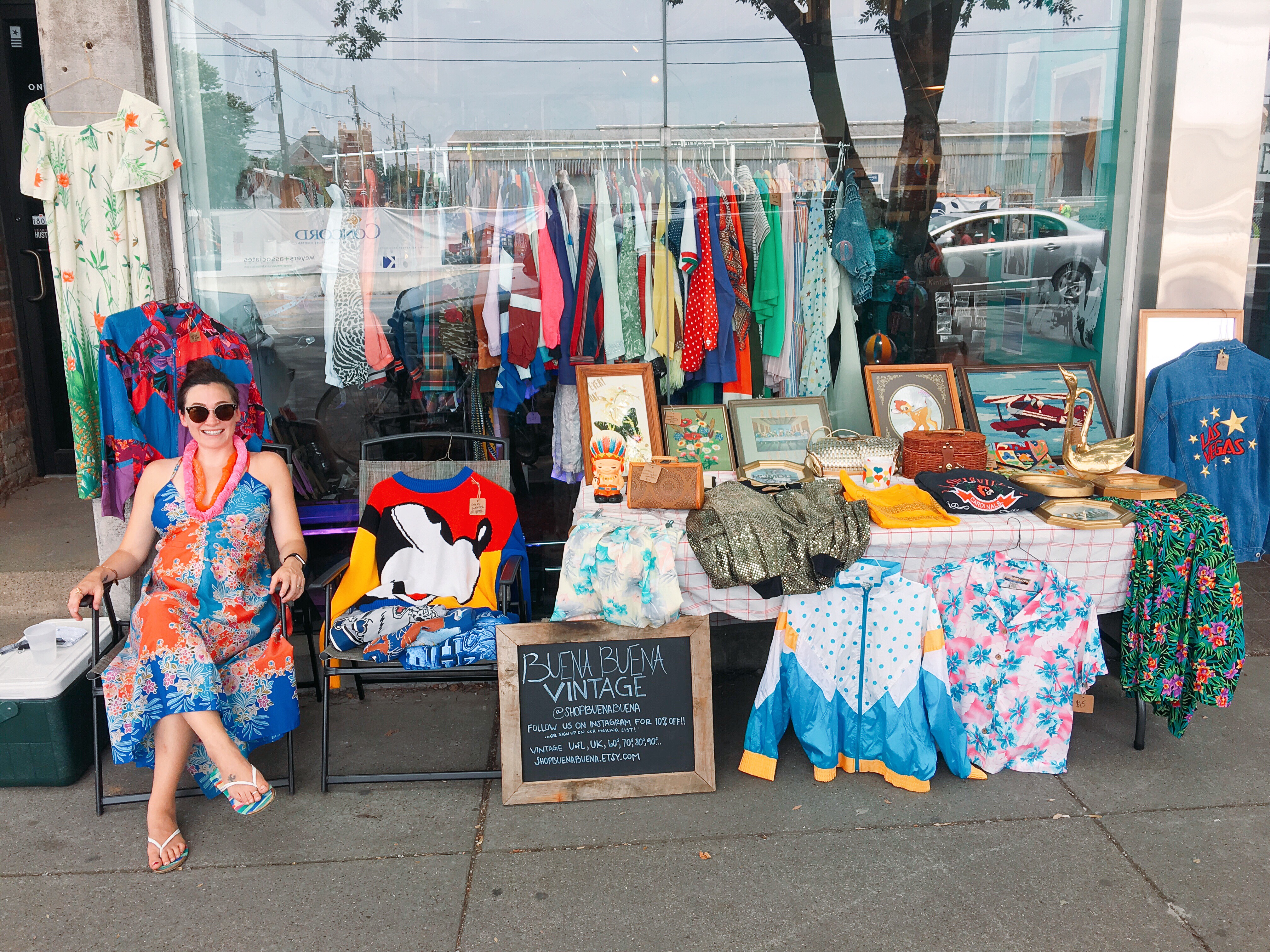 It took me so damn long to set up at the Flea Off Market because I have seen the wonderful and whimsical shop fronts that folks set up at Porter Flea in Nashville, and I felt like I needed to have THAT level of shop / brand aesthetic down when I debuted my shop at the Louisville market. I had (and still have) ideas of hanging vintage drapes, a branded sign with Buena Buena Vintage marking my place in the market, decorated shelving and display boxes etc. etc…but if I waited for that level of perfection I realized I absolutely would never wind up at the market. Penelope would arrive, take over every waking minute, and I really didn’t want to juggle figuring out the logistics of the market for the first time AND the logistics of being at the market with a baby.