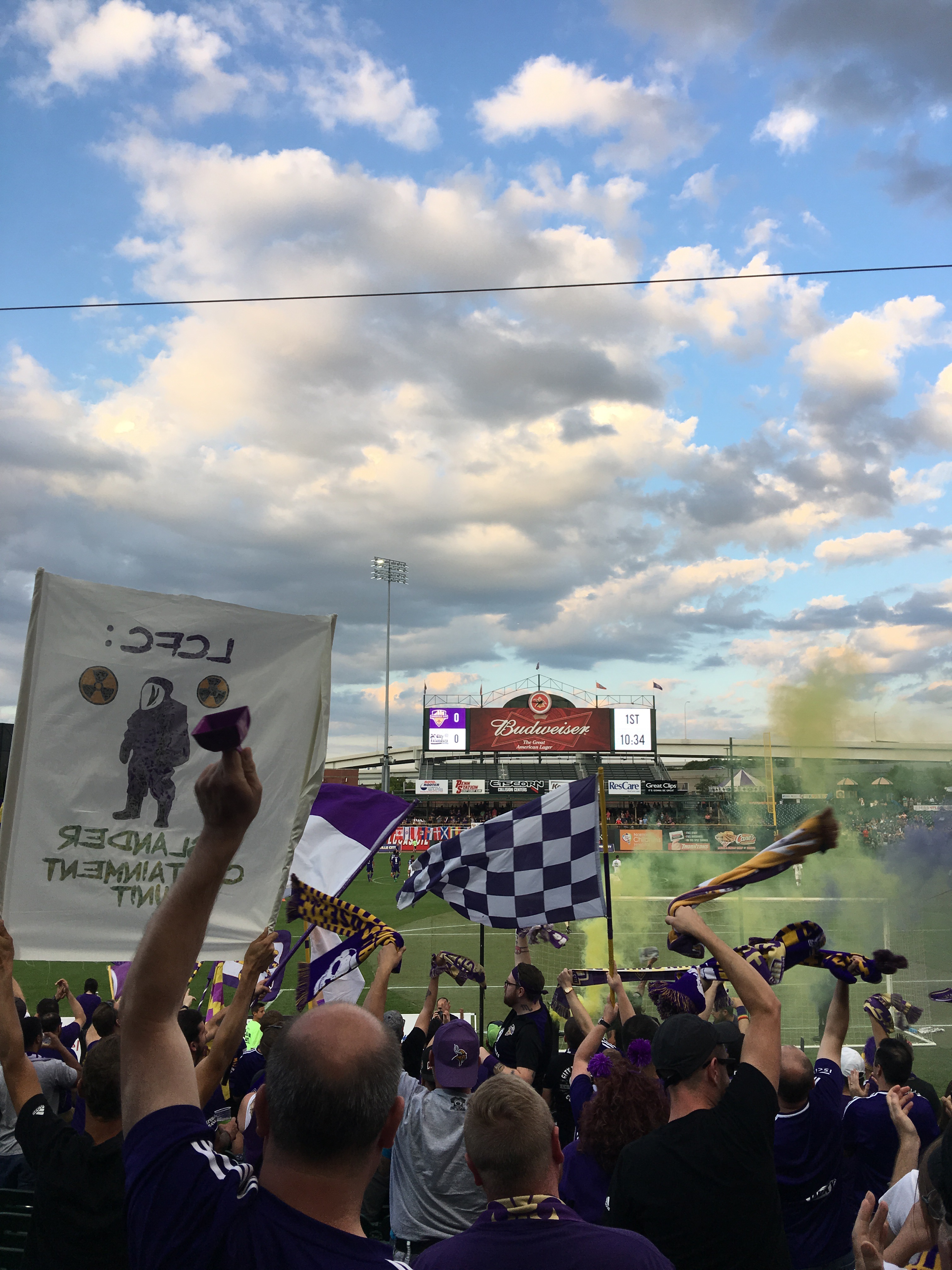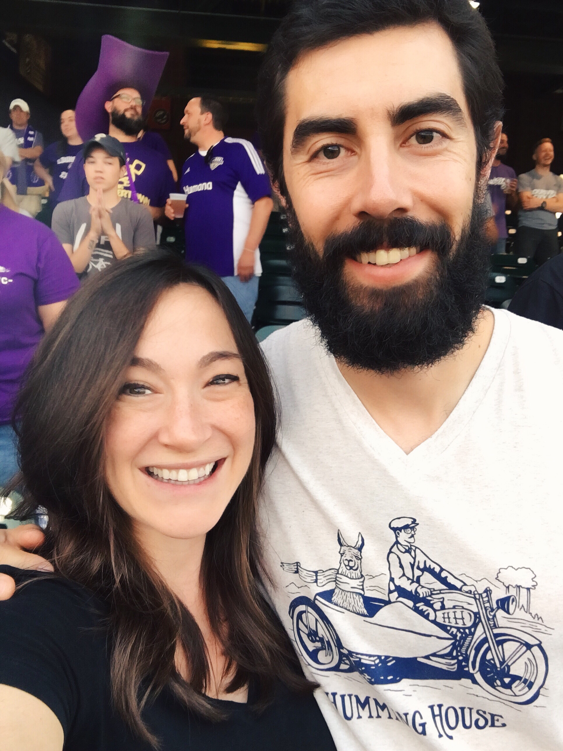 On Wednesday we went to the Louisville City FC game at Slugger Field. We love the Lou City games, and we’ve tried to make it to as many as possible this summer. The games have grown in popularity since we first moved here, and the one that we attended before this last one had over 10k in attendance! The crowd was lighter this week because it was a Wednesday but the fans were still rowdy and fun, especially in the supporter section where we always sit. We’ve learned most of the cheers by now and we stand up the entire game yelling along with the Coopers and the Heretics, the two largest fan clubs devoted to the team. Those fans go all out dressing up, painting their faces, making signs and flags – there’s even a drum corps. The team is getting their own stadium in Butchertown sometime in the next few years (construction begins soon), so it’ll be fun to bring Penelope to these games over the years.