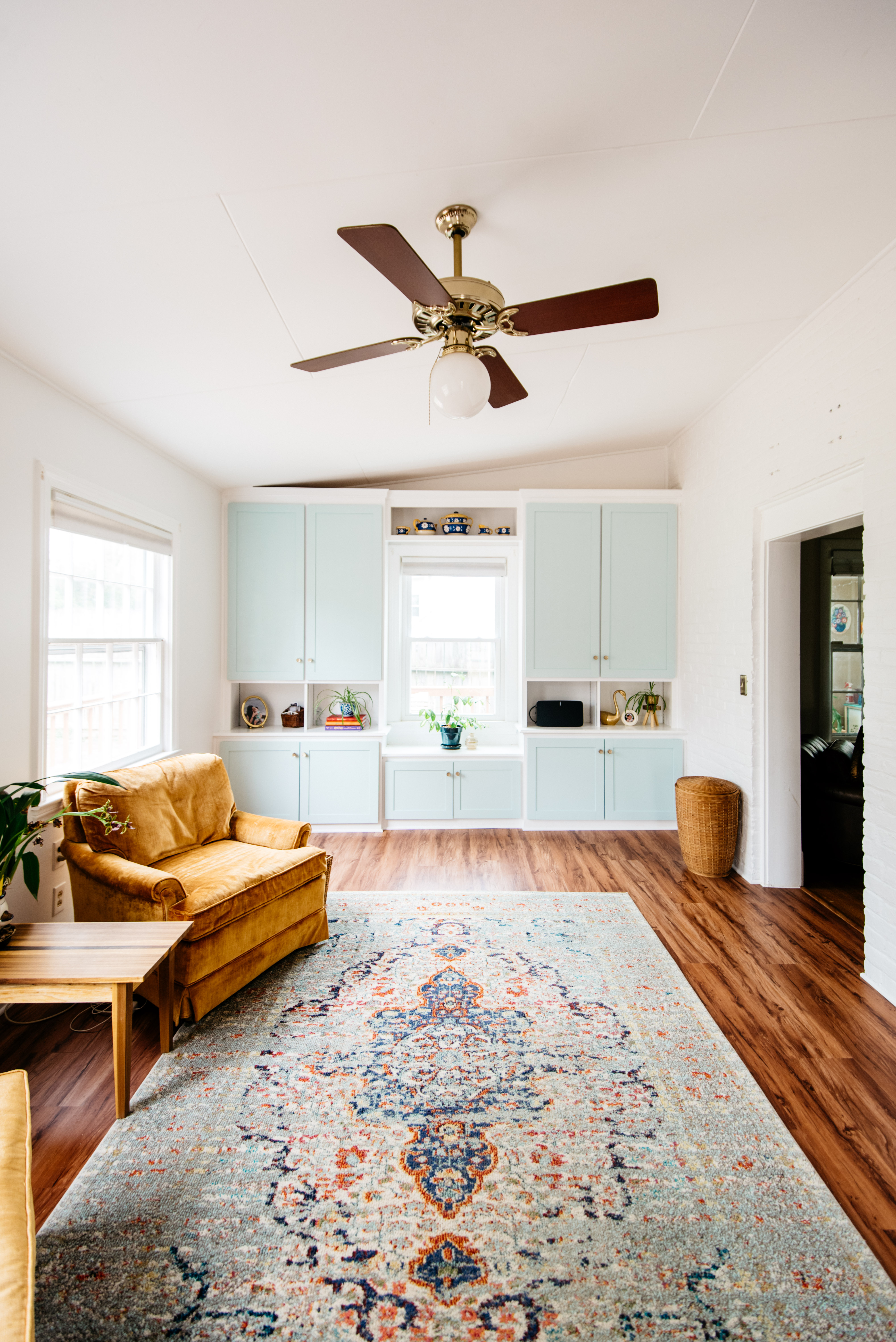Above – the family room after we laid the floor down but BEFORE we closed the built-in cabinets