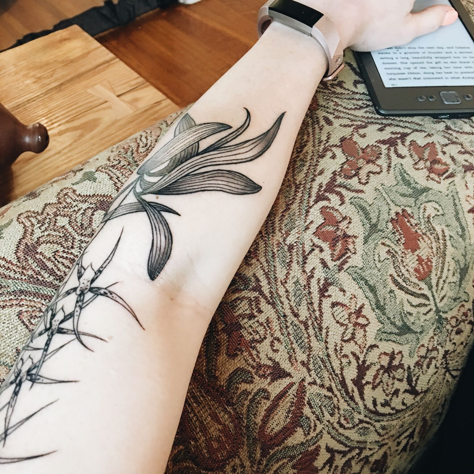 What else what else…in March I got a tattoo – I’ve been wanting one (or several) for years, and I’ve been following the artist Evan Davis for awhile and finally contacted him about my idea. I wanted one (or several) of Javier’s orchids, specifically Cosmos this time around. Cosmos blooms about every 3-4 months, he’s super faithful, and absolutely GORGEOUS. Evan Davis is especially superb with his tattoos featuring flora of any kind, and I’ve always liked the fine lines, details, and zero color. He took my idea and made it exactly what I wanted and more – he even added the leaves which I LOVE but had no idea how to incorporate. I am so happy – and of course I can’t wait for the next one.