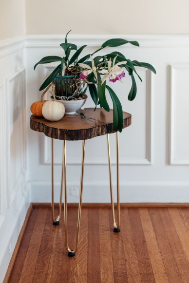 Of course a table is not a table without legs. Given the color of the wood and how in style mid-century modern is, I decided to use metal legs on this one. But not just any metal leg: GOLD legs! I got them on Amazon and they are perfect. The color of the legs compliments the wood perfectly and gives it a slightly more luxurious look. This is my first time using gold legs and I must say…I may do it again. I plan on making the second table soon so I can have two almost identical ones that can be placed at each end of a sofa.