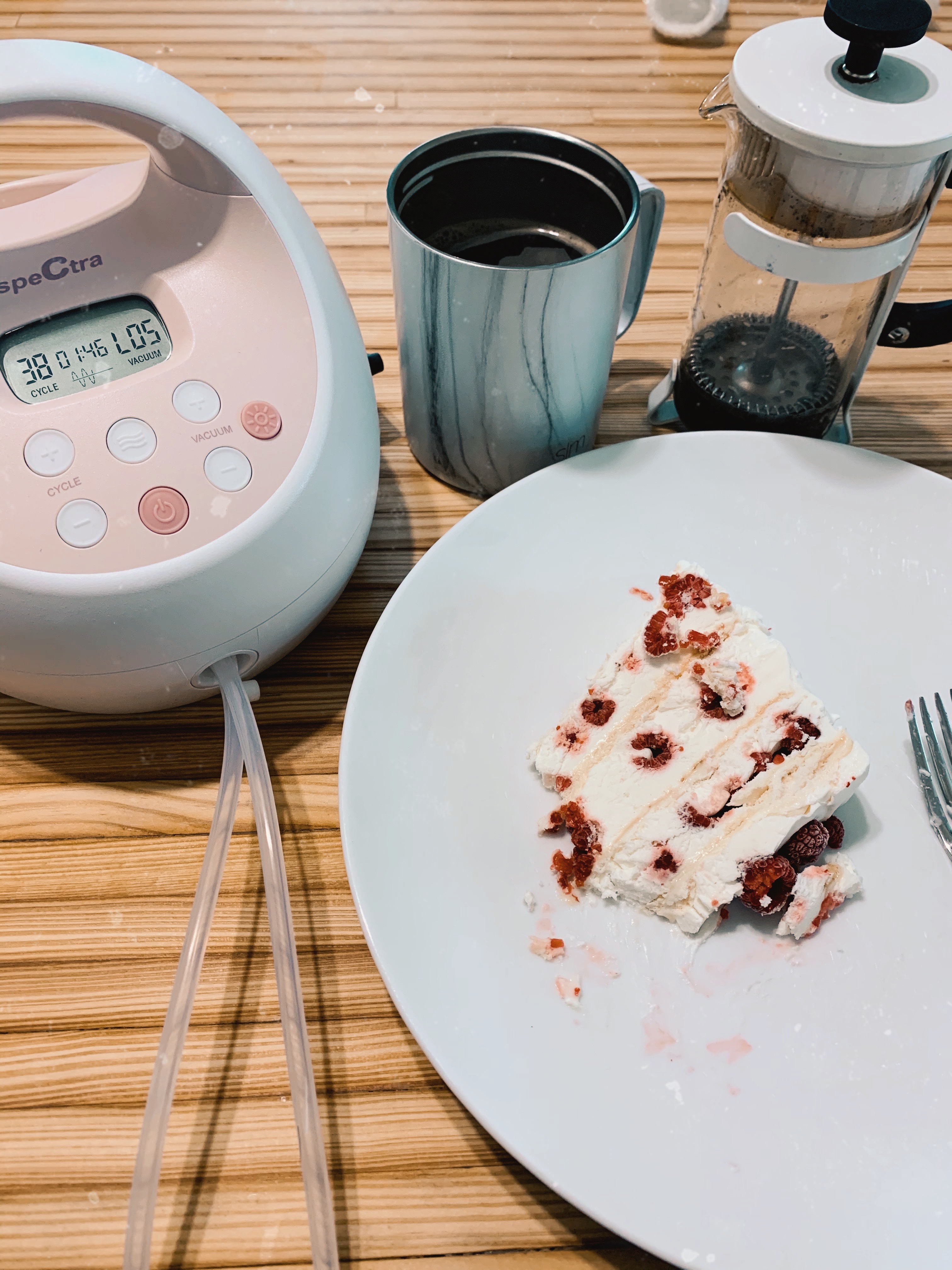 Javier’s paternity leave officially started last Monday and I already feel like it’s moving too fast. On Wednesday (yes, the day after we got home!) he made a 4-layer meringue and raspberry cake with raspberries from our garden…it’s been the perfect snack every afternoon while I pump! Ha! Now I associate raspberries with the birth of both of our daughters; our neighbors across the street also baked a raspberry cake with raspberries from THEIR garden for Penny and Goldie’s official birthdays.