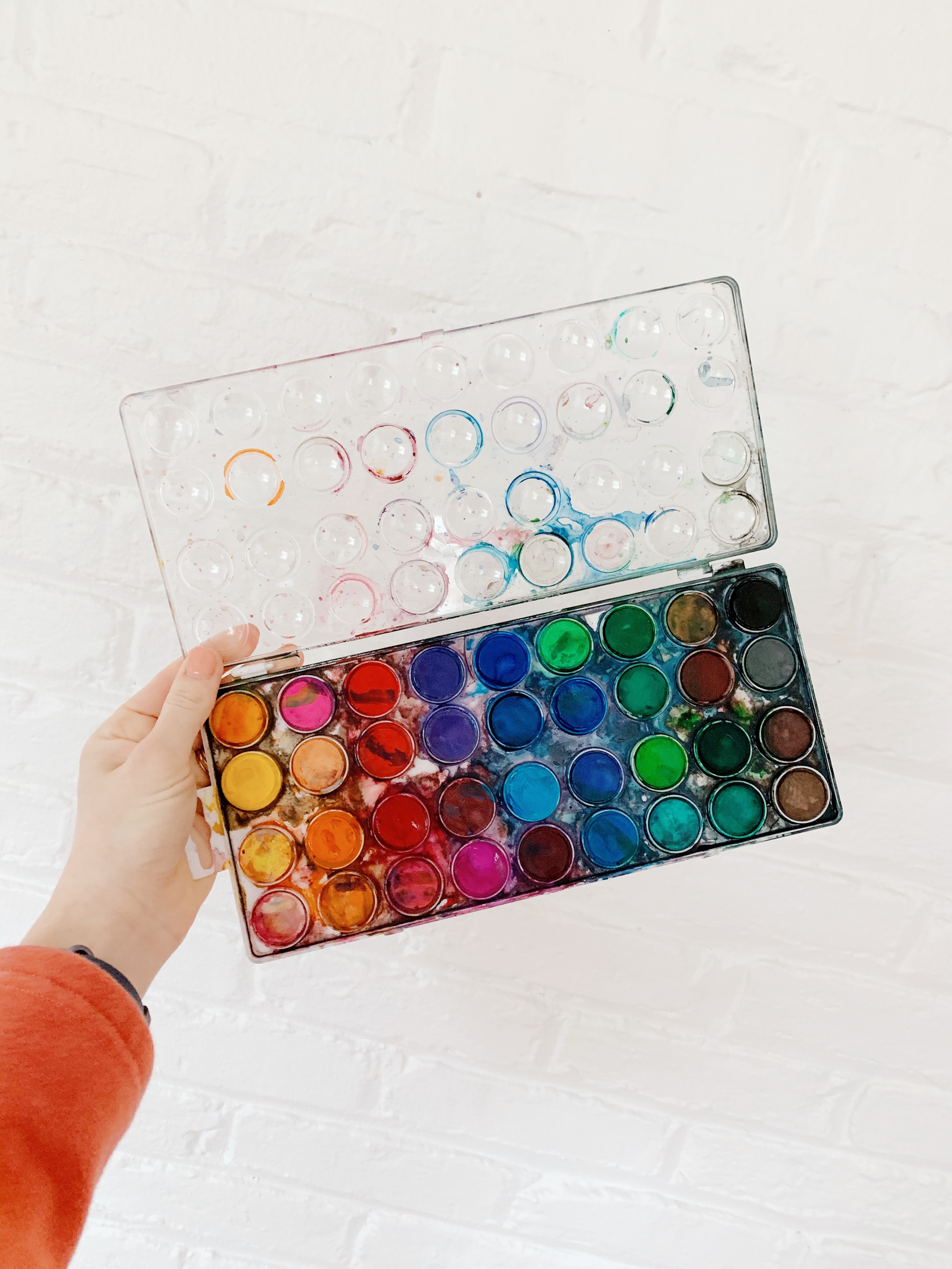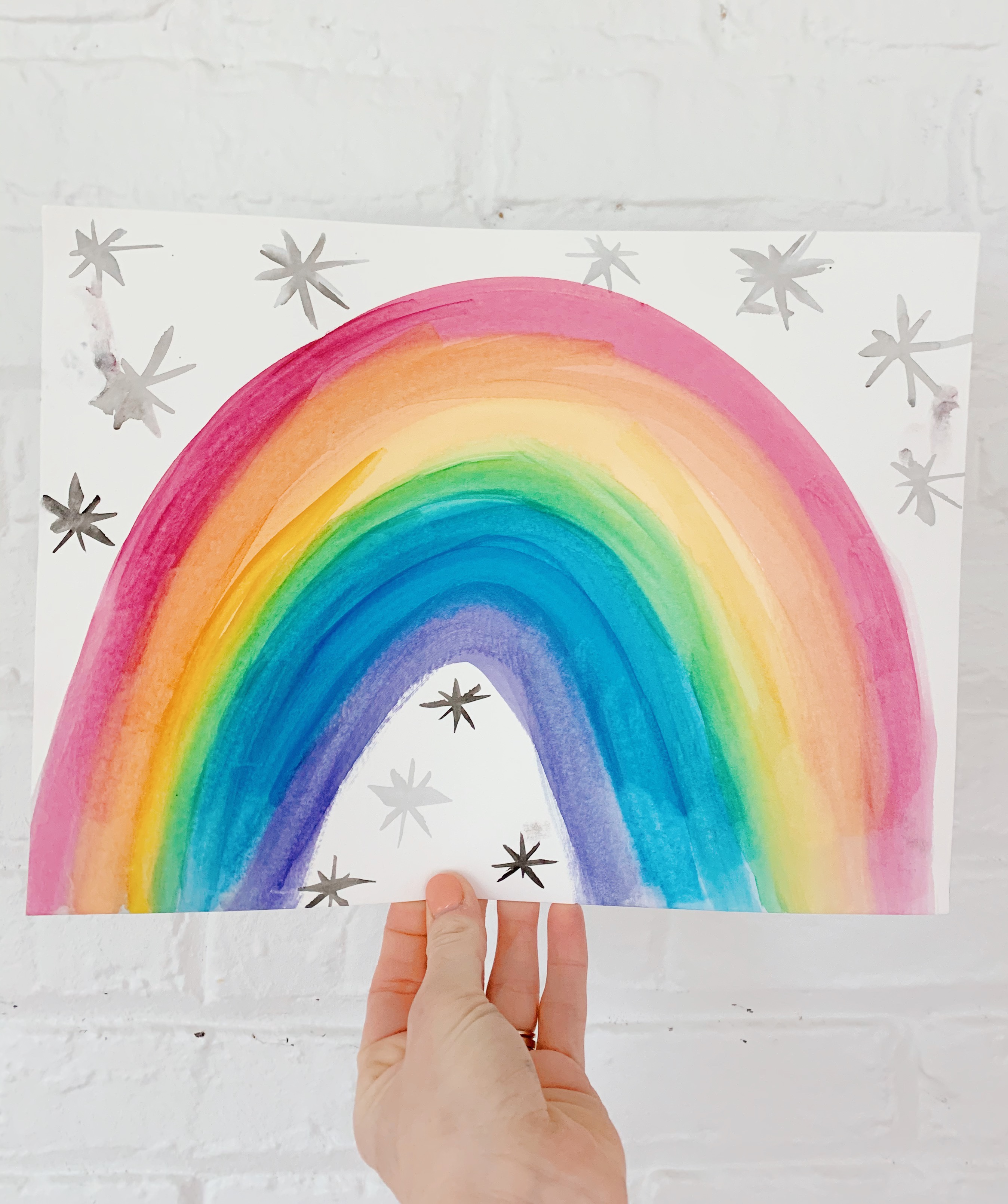 I hope this turns into a fun activity for you all! We made a rainbow with Penny’s watercolor paints on some thick watercolor paper – I might just frame it after all this is over for a beautiful reminder of a tough time. She insisted we use black paint too, so we made black stars all around the rainbow! Let me know if you do this too – I’d love to see other people’s rainbow scavenger hunt stories!