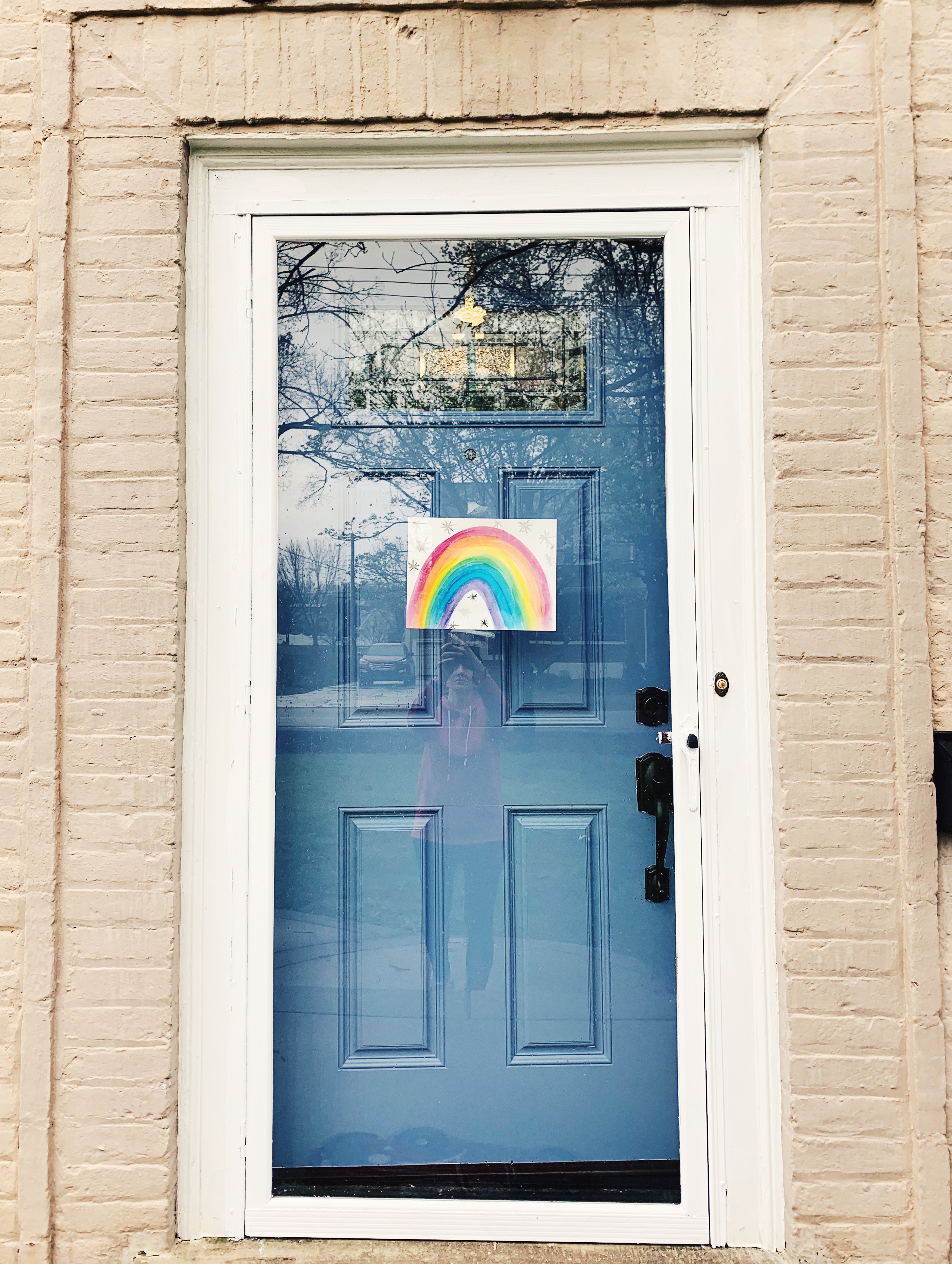 All you have to do is put a rainbow in your window! Color it, paint it, cut it out, print it from the printer, whatever. Then when we are outside on our sanity walks, we can see how many rainbows we can find!